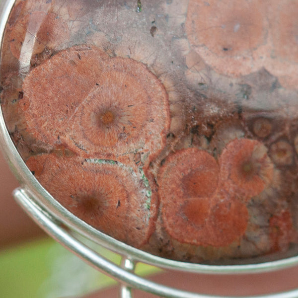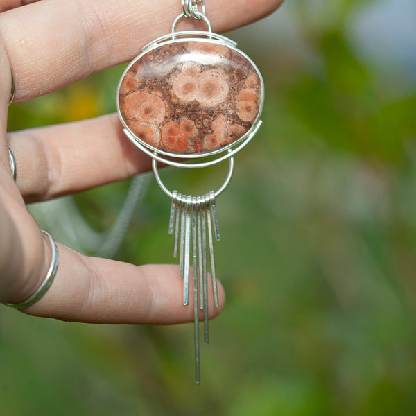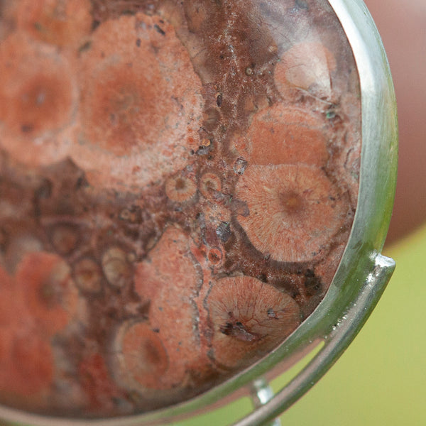 The main stone in this Aurae pendant is a wonderful poppy jasper. Its pattern looks like a field of poppy flower in bloom!