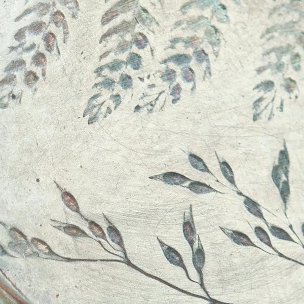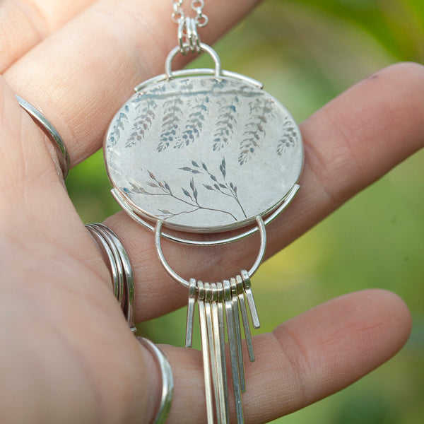 The back of the jasper hides an imprint of blooming wild grass & fern : I press the dried vegetal onto the silver to leave its fine relief with all its details.