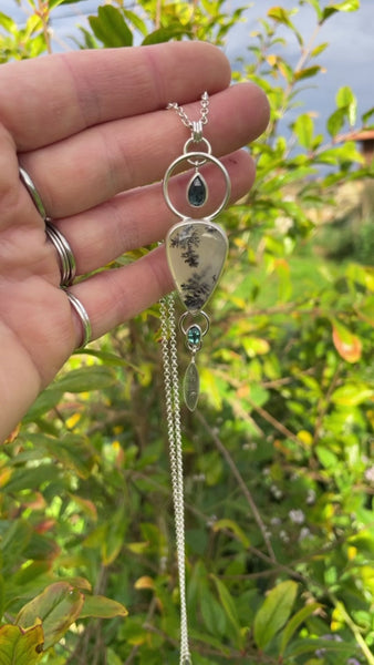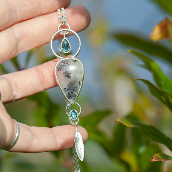 OOAK Aurae pendant #9 • Dendritic Opal, Kyanite & tourmaline (ready to ship)