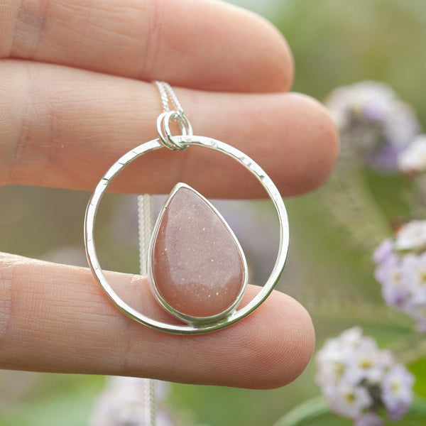 OOAK Mae pendant in silver #26 • Pink Moonstone (Ready to ship)