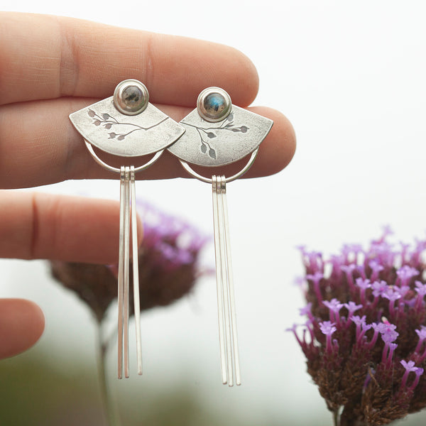 : Labradorite, sterling silver & blooming wild grass