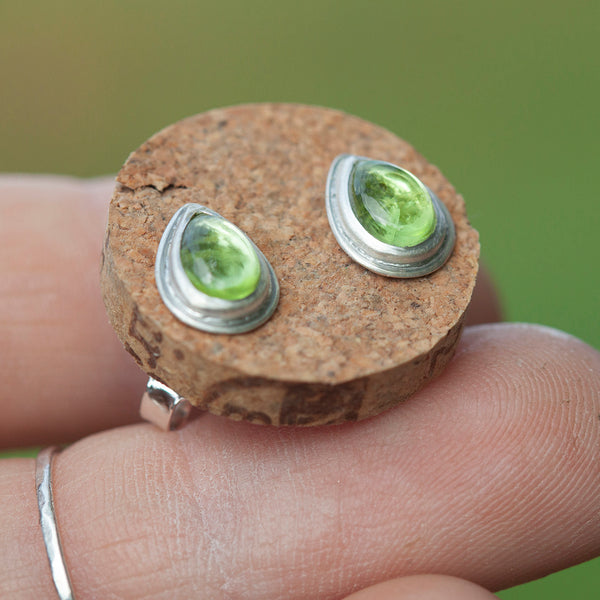 Stone stud earrings in silver #1 • Peridot (ready to ship)