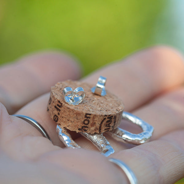 This collection of unique jewels was called Tera ~ inspired by raw earth and elemental forms. Each piece is made by melting recycled bits of sterling silver, allowing the metal to flow freely ~ no two shapes or textures will ever be the same.