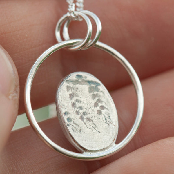 On the back of the stone, a unique vegetal imprint is hidden 🌿 a secret little piece of nature that belongs only to your pendant