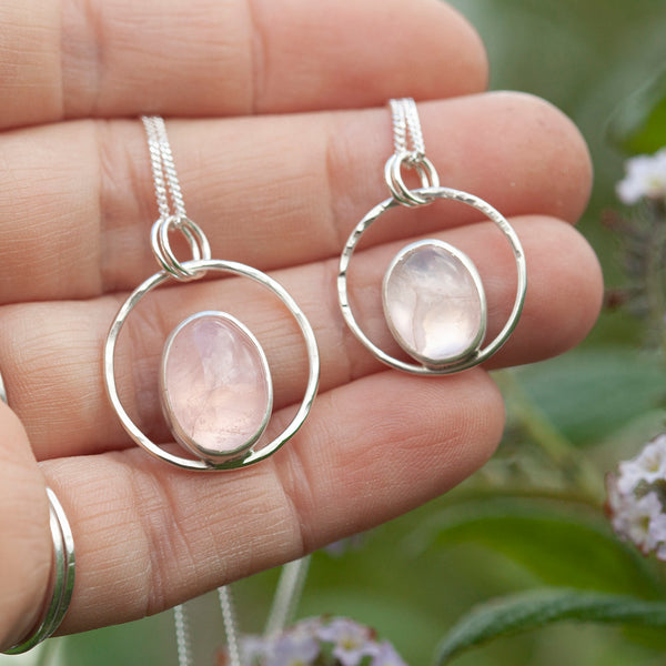 OOAK Mae pendant in silver #21 • Rose Quartz (Ready to ship)